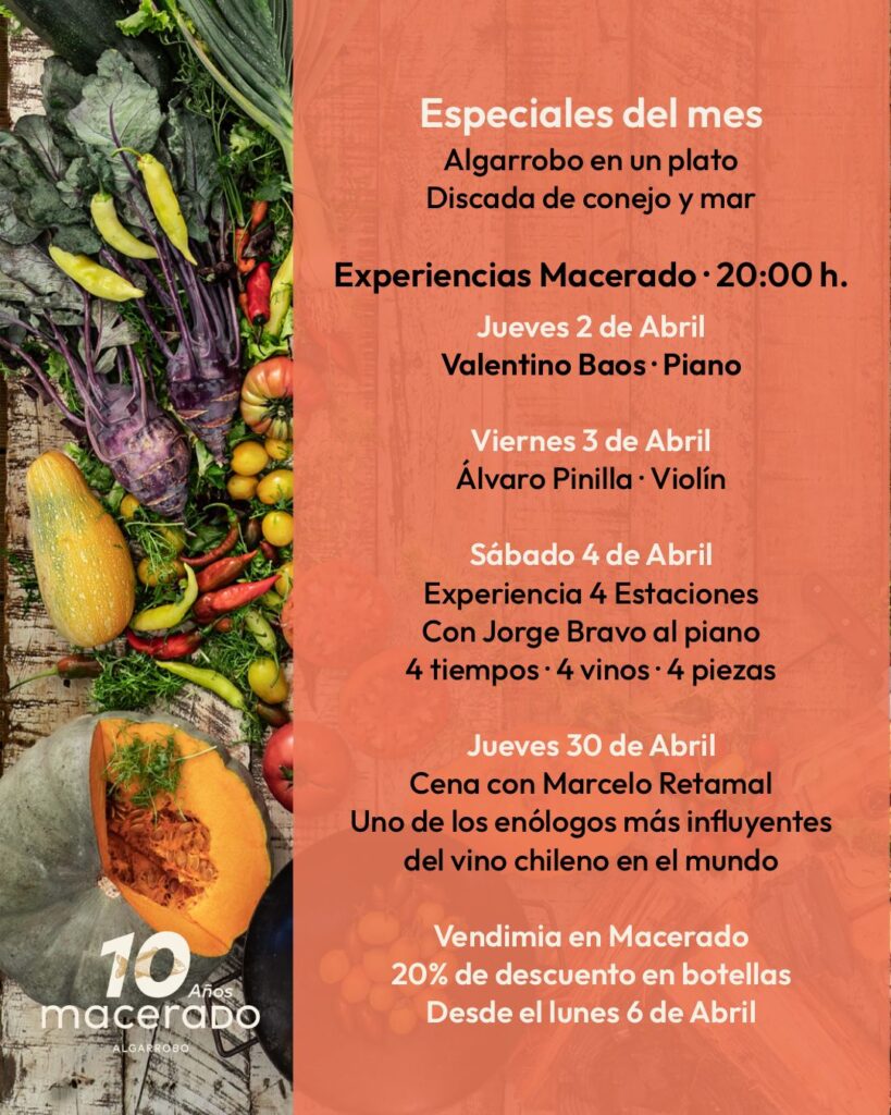 En Semana Santa, destacamos productos del mar con preparaciones que forman parte de nuestra identidad: “La discada de Conejo y Mar” una propuesta que une Casablanca y Algarrobo, combinando campo y océano en un mismo plato y “Recolección de Mar” una preparación que reúne productos del litoral y pone en valor la frescura y el origen de nuestra cocina.